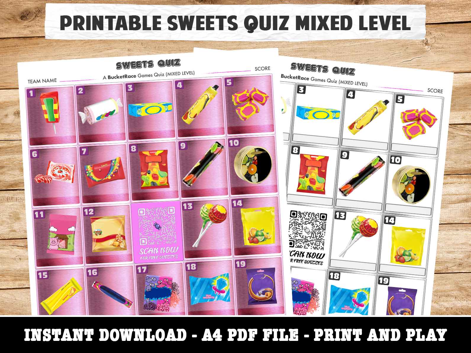 Our quizzes are crafted for easy downloading, printing, and digital display, perfect for family quiz nights, local pub quizzes, or virtual gatherings. Each download includes both full-colour and low-ink options, along with a question sheet, answer sheet, and dedicated spaces for team names and scores. Files are provided in PDF format and are available for download immediately after purchase through our website.