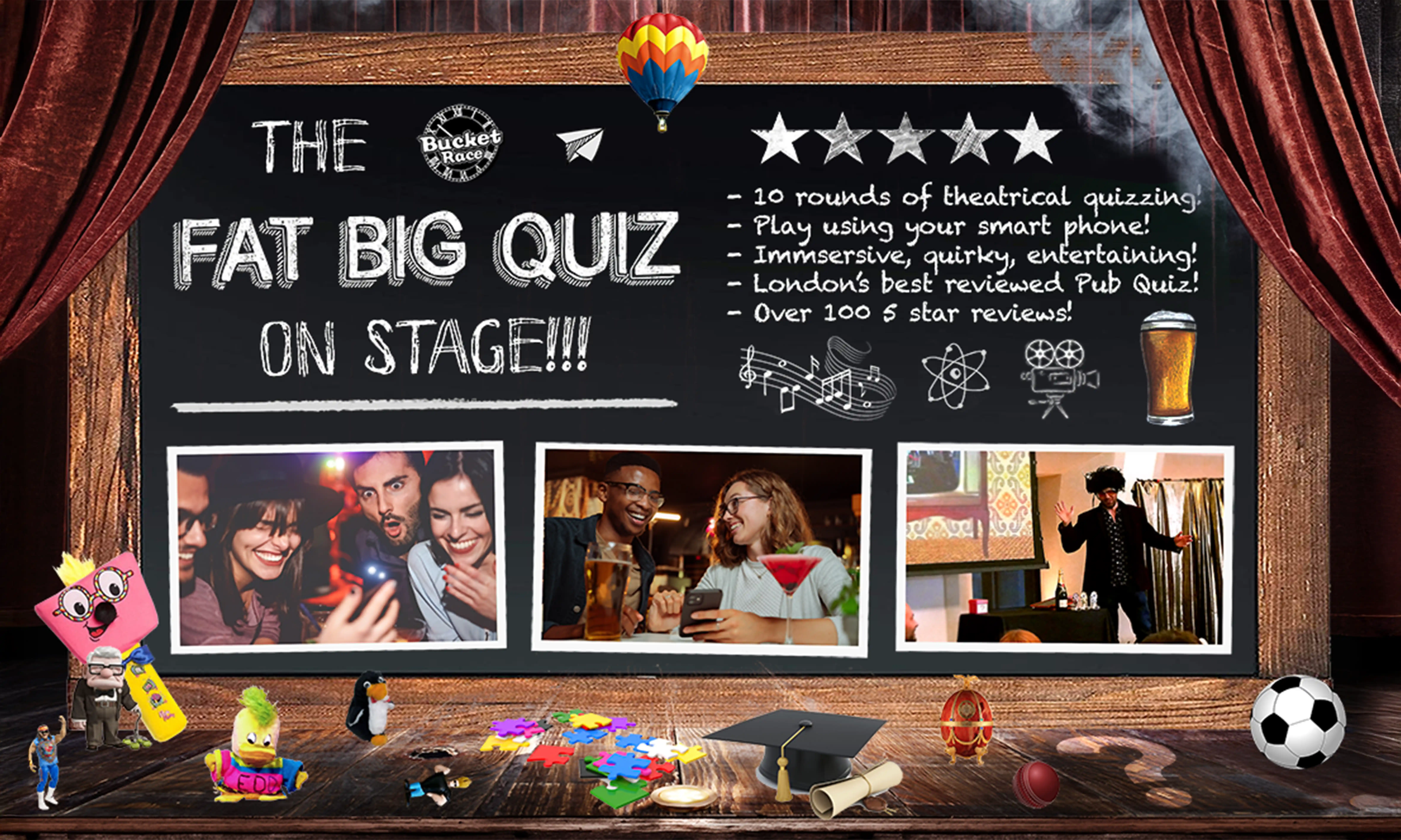Live theatrical quiz experience. 90 minutes of entertainment with professional hosts and amazing prizes.